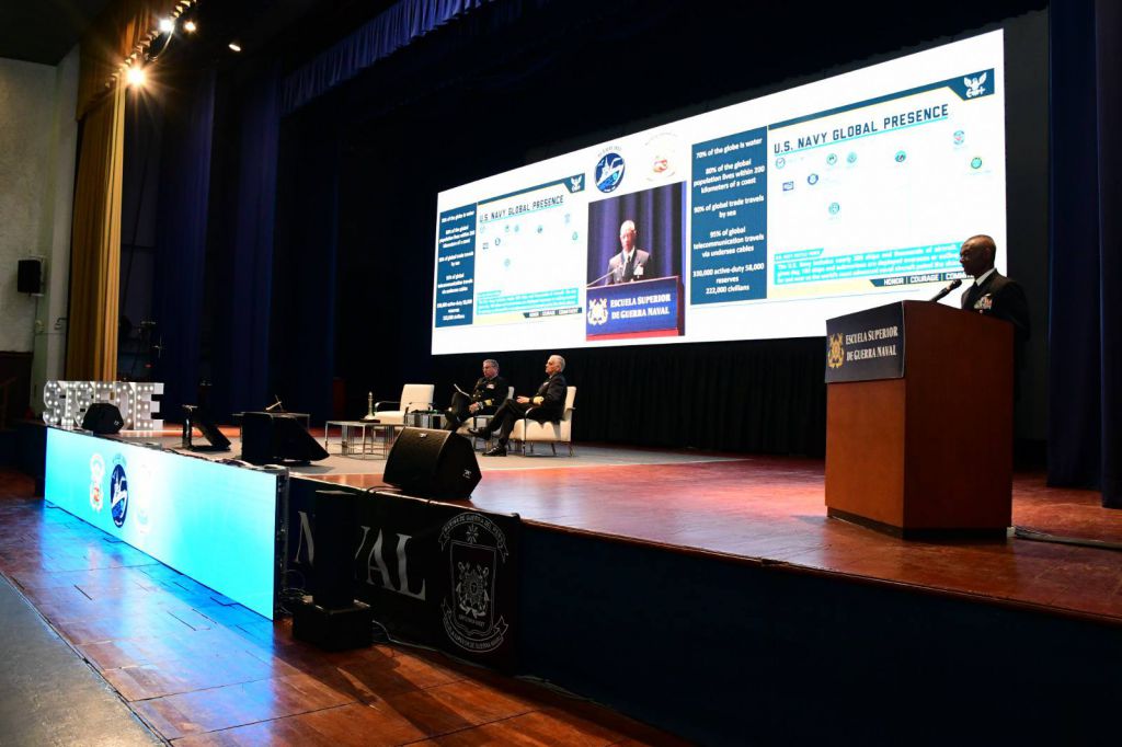 La ceremonia de inauguración fue presidida por el Ministro de Defensa, Walter Astudillo Chávez, quien estuvo acompañado por el Comandante General de la Marina, Almirante Javier Bravo de Rueda Delgado, además de representantes de las Fuerzas Armadas, diplomáticos, académicos y líderes del sector defensa.